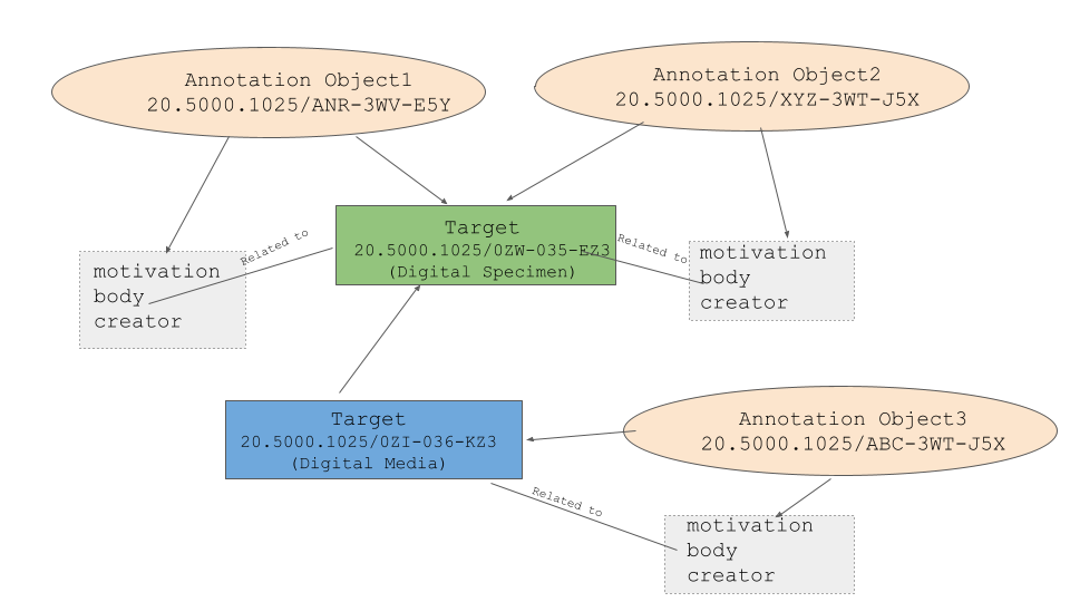 Annotation: After authentication, the user can annotate either a full Digital Specimen record or a specific field. We have done work on creating a new Annotation data model (see the latest version of the Annotation JSON schema ). An RFC has been sent out to the community for feedback. We have made an effort to incorporate the W3C Web Annotation data model to use concepts such as Target, body, and motivation. Our current implementation allows for creating annotations based on this schema and these annotations are created as FAIR Digital Objects (with PID and FDO Records). We are working on adding a batch feature and also a scoring and trust model.